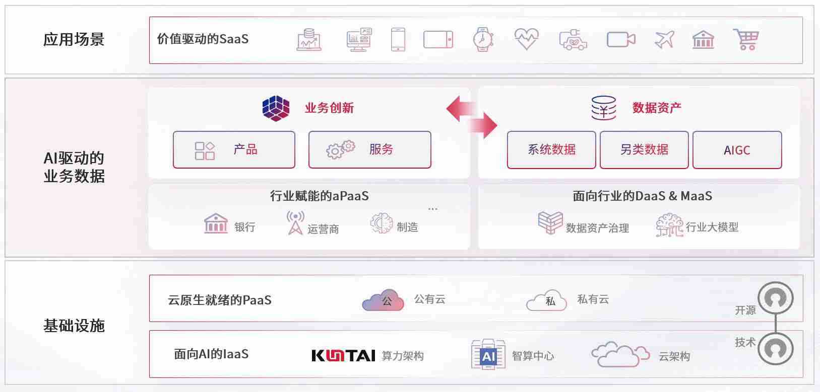数字时代,,围绕企业数字化转型的关键要素,,Z6尊龙数码开创性的提出数云融合战略和技术体系框架,,着力在云原生、、、数字原生、、、、AI原生和信创产业上架构产品和服务能力,,为处在不同数字化转型阶段的快消零售、、汽车、、、、金融、、医疗、、、、政企、、教育、、、运营商等行业客户提供泛在的敏捷IT能力和融合的数据驱动能力,,构建跨界融合创新的数字业务场景和新业务模式,,助力企业级客户建立面向未来的核心能力和竞争优势,,,,全面推动社会的数字化、、、智能化转型升级。。。